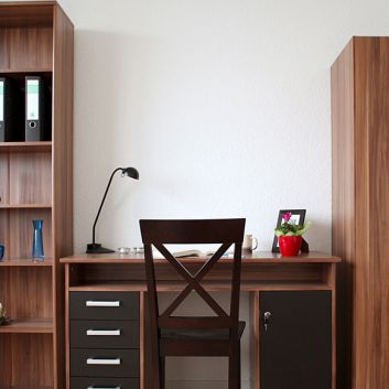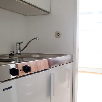 4제공되는 가구및 시설 (독일어원문) • komplett möbliert (Bett, Kleiderschrank, • Schreibtisch, Regal und Stuhl) • Bettwäsche* inkl. Kopfkissen und Bettdecke • Miniküche mit Kühlschrank • Herd mit Kochfeld und Spüle • Bad inkl. Dusche, WC und Spiegel • kostenloses WLAN-Netz *Bettwäsche kann einmal im Monat getauscht werden.