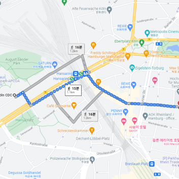 특히   쾰른에서 어학연수 할때 가장 많이 선호되는  CDC 어학원이 도보 16분 거리에 위치해 있습니다.