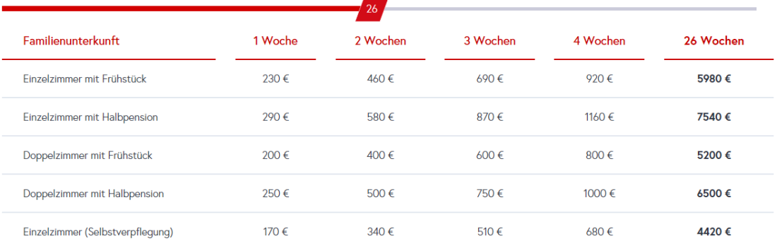 유스호텔: 1인 1실 4주 1180(하루 55유로), 2인1실 860유로 (하루45유로) 여름성수기 위와 동일, 픽업 공항 110유로, 중앙역 80유로