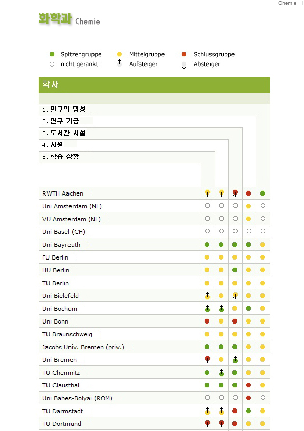 화학과 비교 및 정보